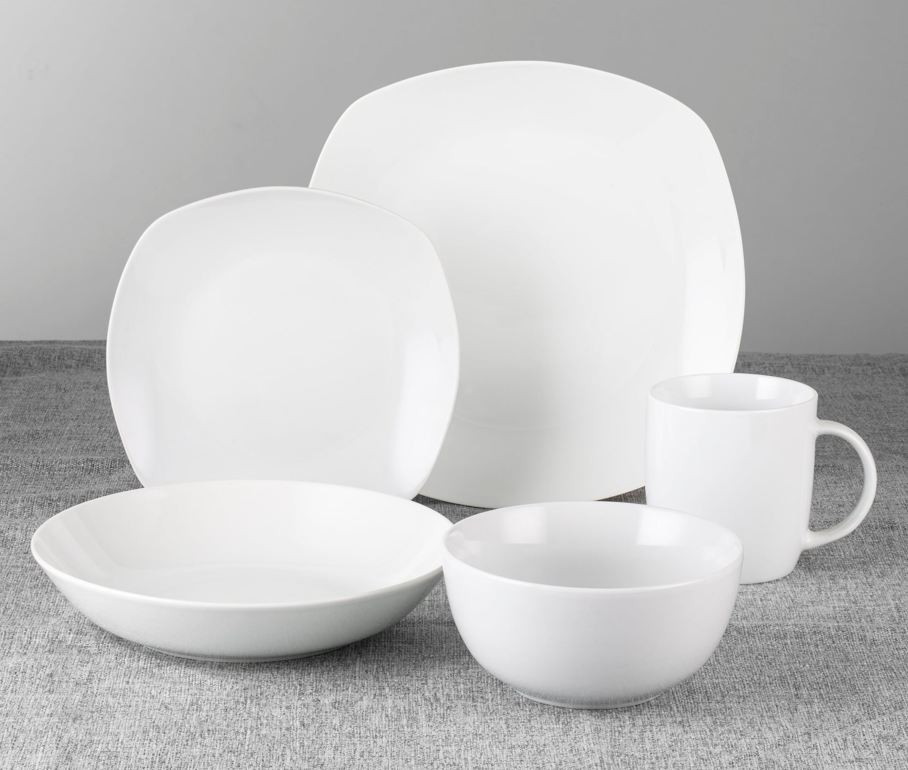 Get ready to dish it out in style with our everyday white modern Dinner Set, made in a squared contemporary style. Enough plates, bowls and side plates feed six mates or family (neither included). Dishwasher safe so you can chill and forget all about the dishes.