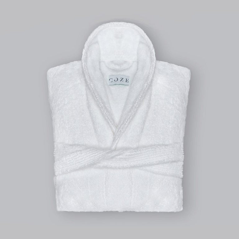 Premium - 100% Cotton, towelling, 380gsm, shawl collar. White only
