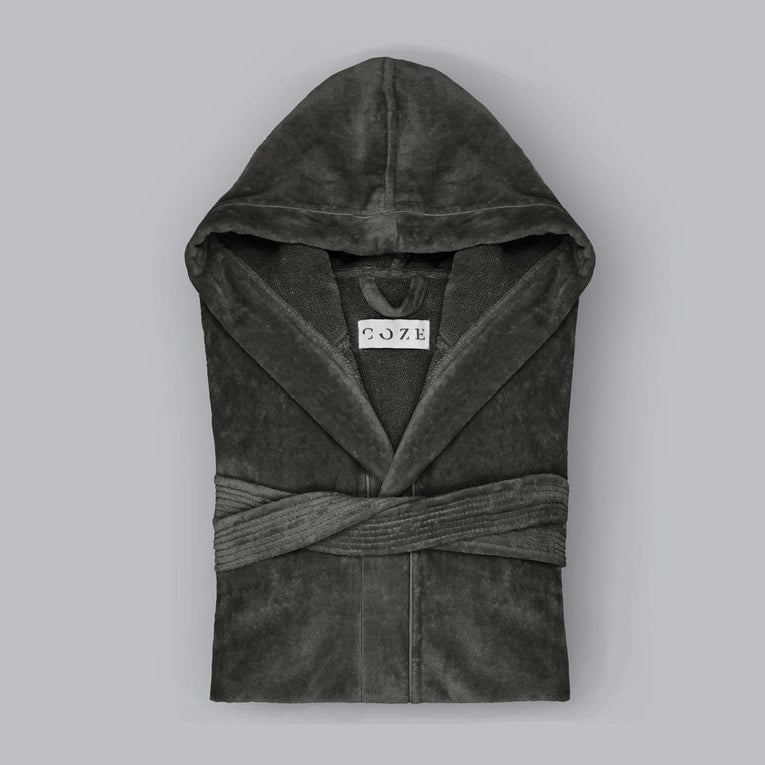 Deuxe Hooded - 100% cotton, velour on the outside, towelling on the inside, 450gsm, features a hood. From our premium brand, Coze Linen