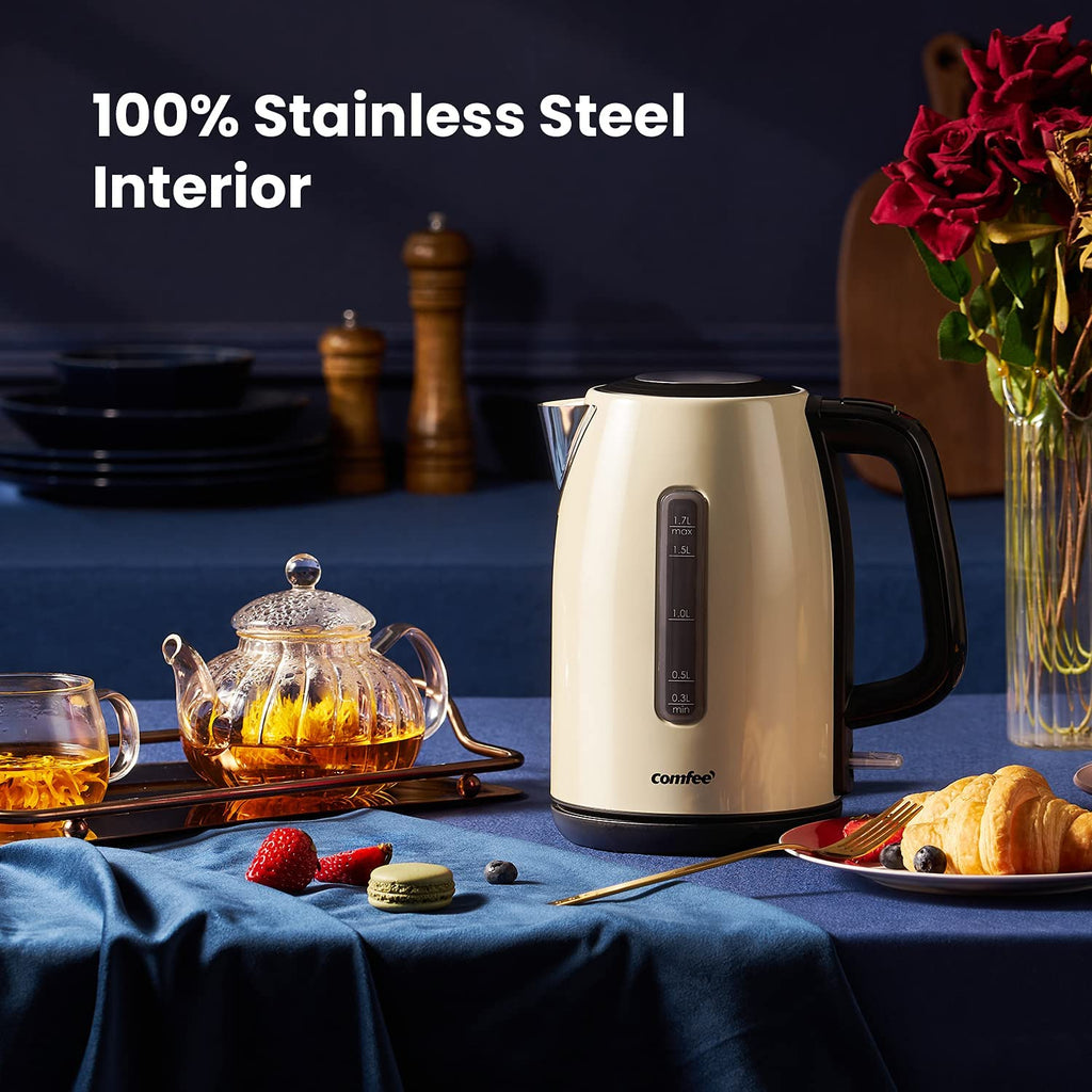 Cream Retro Comfee Kettle - Retro look, Fast-Boil Electric Kettle features a high quality brushed stainless steel body.The Retro Kettle will boil a cup of water in just 60 seconds! With an inbuilt thermostat and a Strix controller, the kettle provides precise temperature control, and ensures safety when in use.