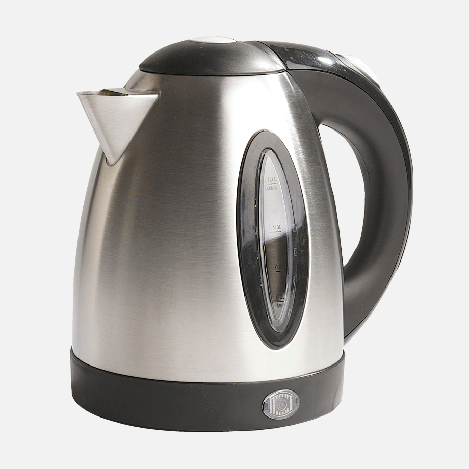 Stainless Steel Kettle: 1.7 Litre, Water level indicator window & 360 degree rotation. Concealed element & clip out washable filter. Power indicator light. 2200W.