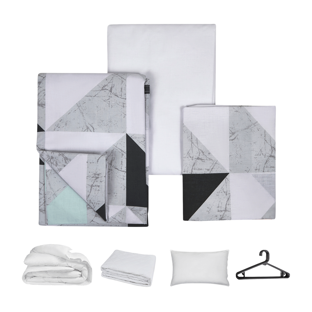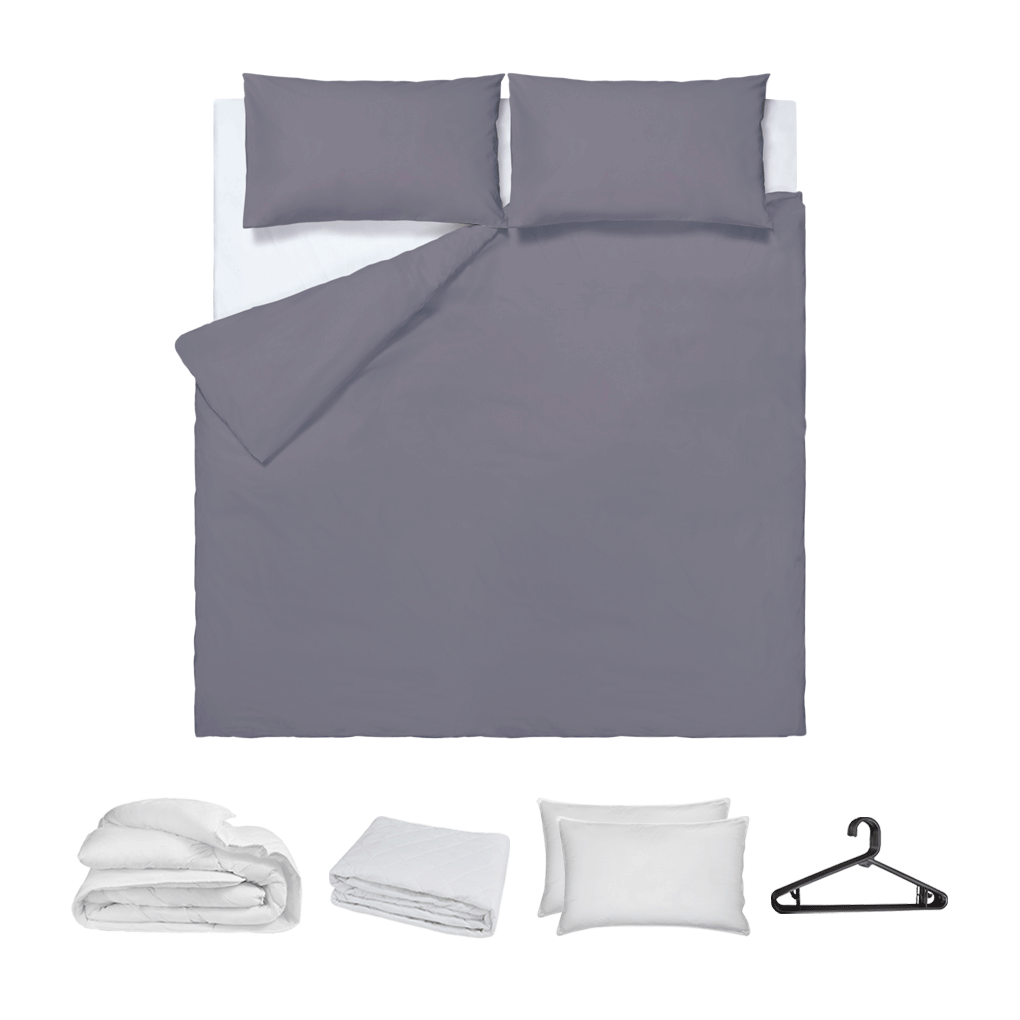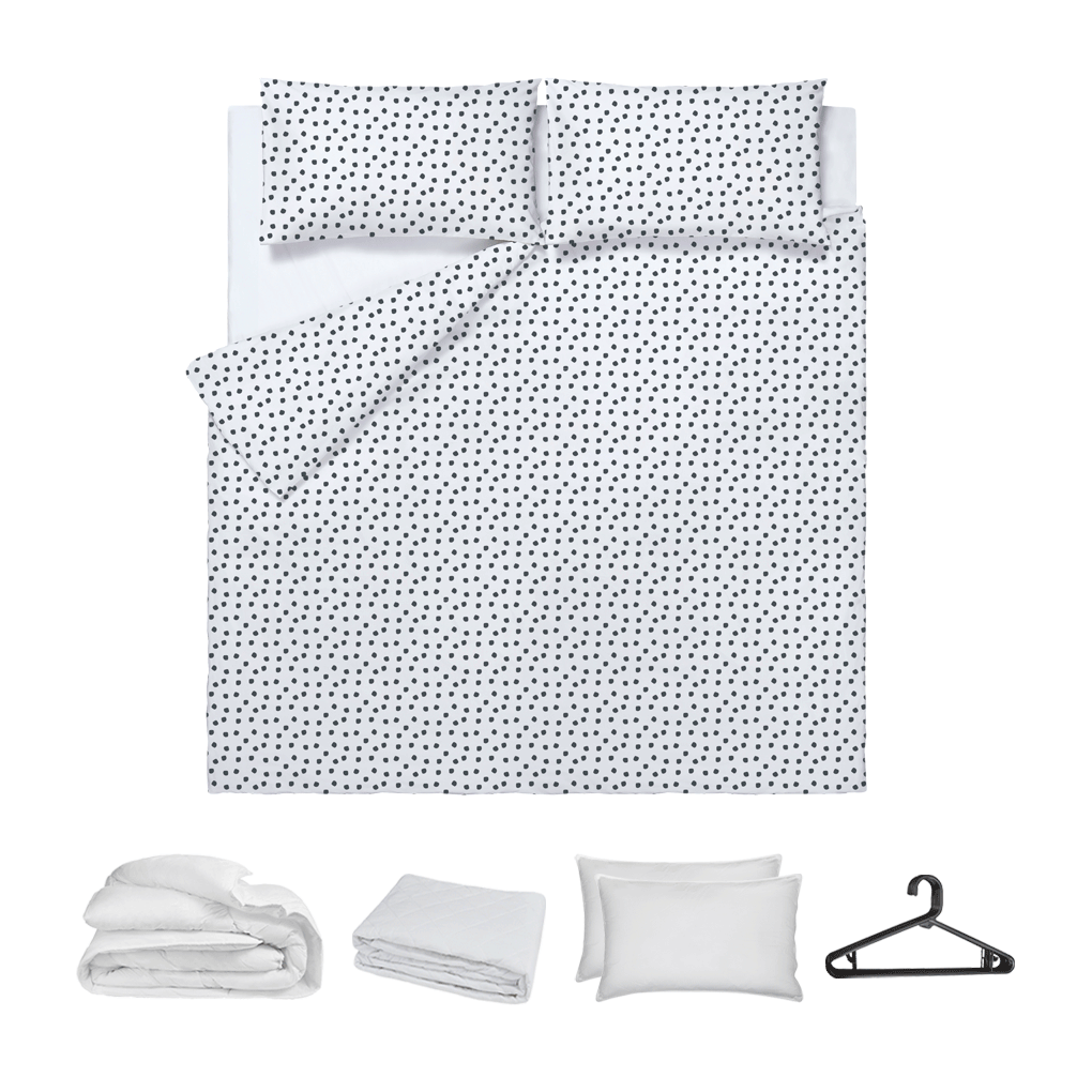 • Hollowfibre 450g pillow with soft-touch microfibre cover (2 pillows included in the 3/4 and double kit)