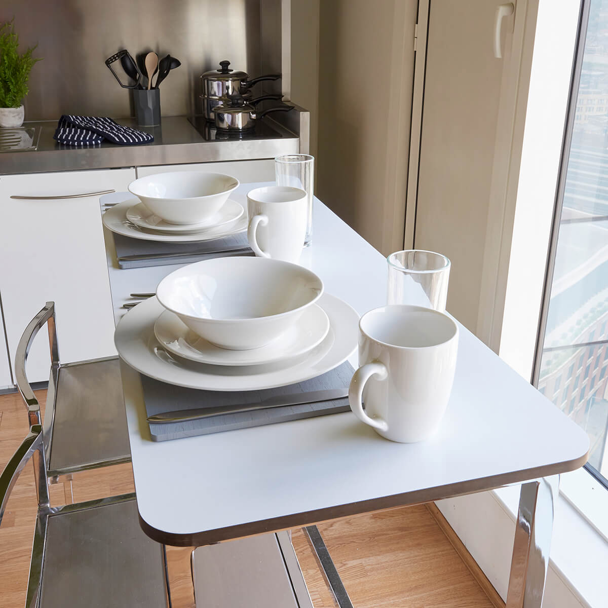 Crockery Kit* – Plates, bowls, glasses, and cutlery. Everything you need to eat, drink, and relax after a long day of lectures.