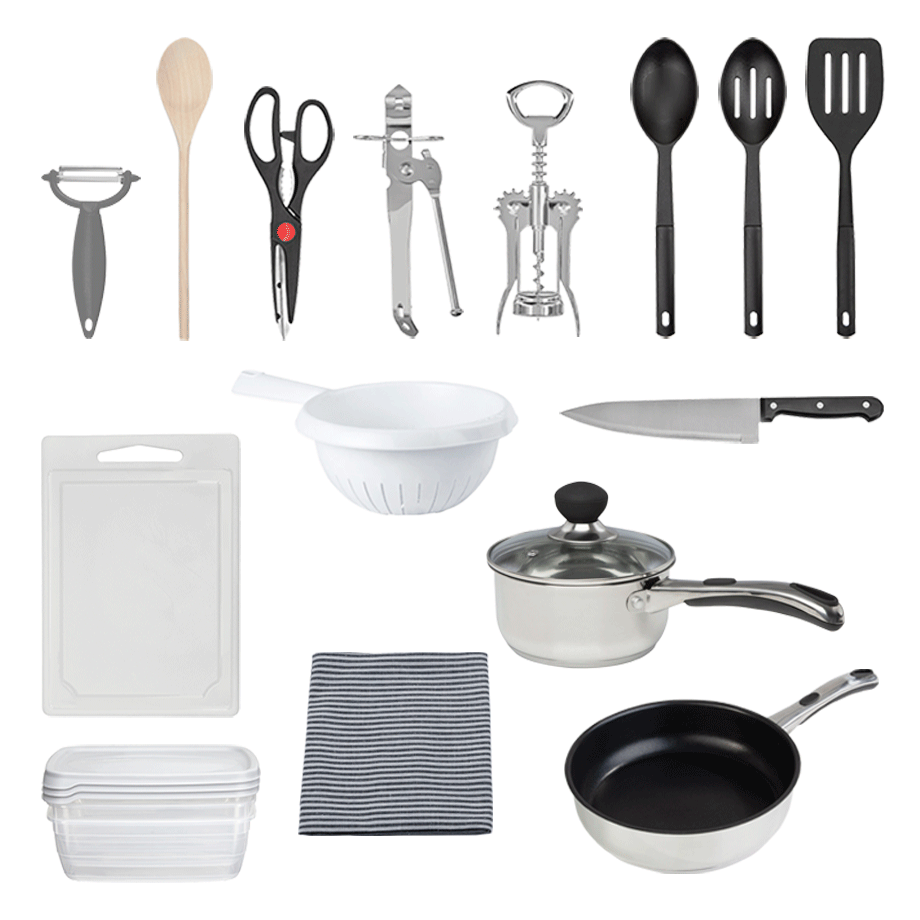 The Standard Kitchen Kit has you covered with kitchen essentials, perfect for beginner chefs who need the basics.