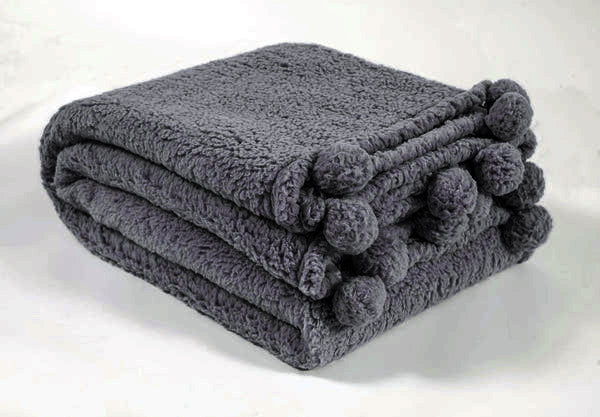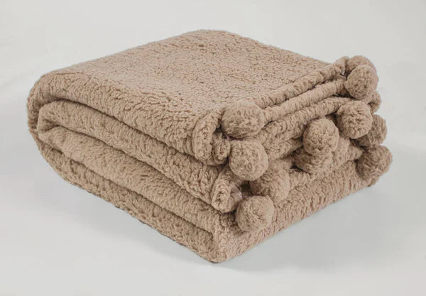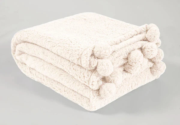Sherpa Pom Pom Throw:  Super warm 100% polyester 140x180cm, Washable at 40 degrees.